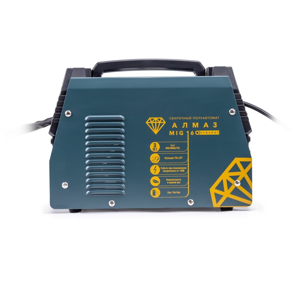Сварочный аппарат АЛМАЗ MIG 160 SYNERGY – это источник питания с полностью цифровым управлением, позволяет производить сварку, используя инверторную технологию преобразования и управления сварочным током. При этом аппарат обеспечивает идеальные параметры сварки, даже при большом падении входящего напряжения, особенно на малых токах, при сварке небольших толщин.