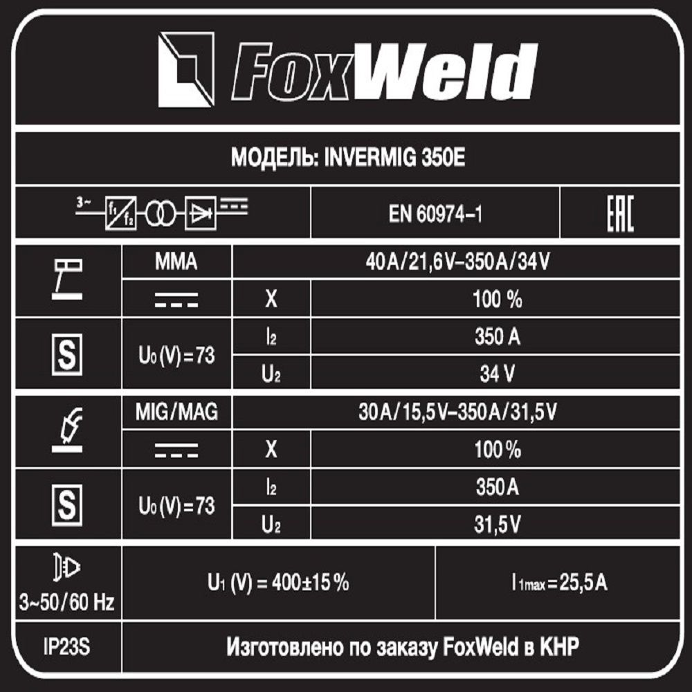 Сварочные инверторы MIG-MAG Fox Weld INVERMIG 350E с аттестацией НАКС: характеристики